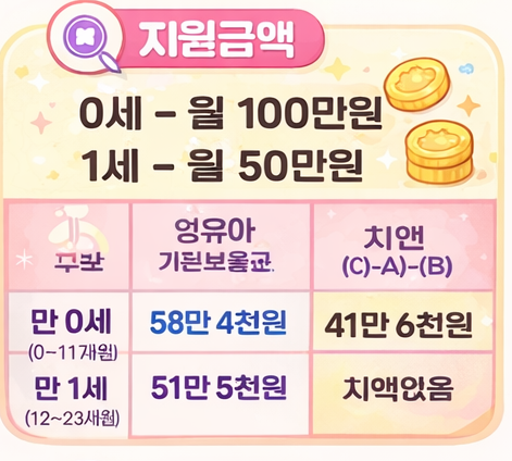 - 만 0세 월 100만 원, 만 1세 월 50만 원