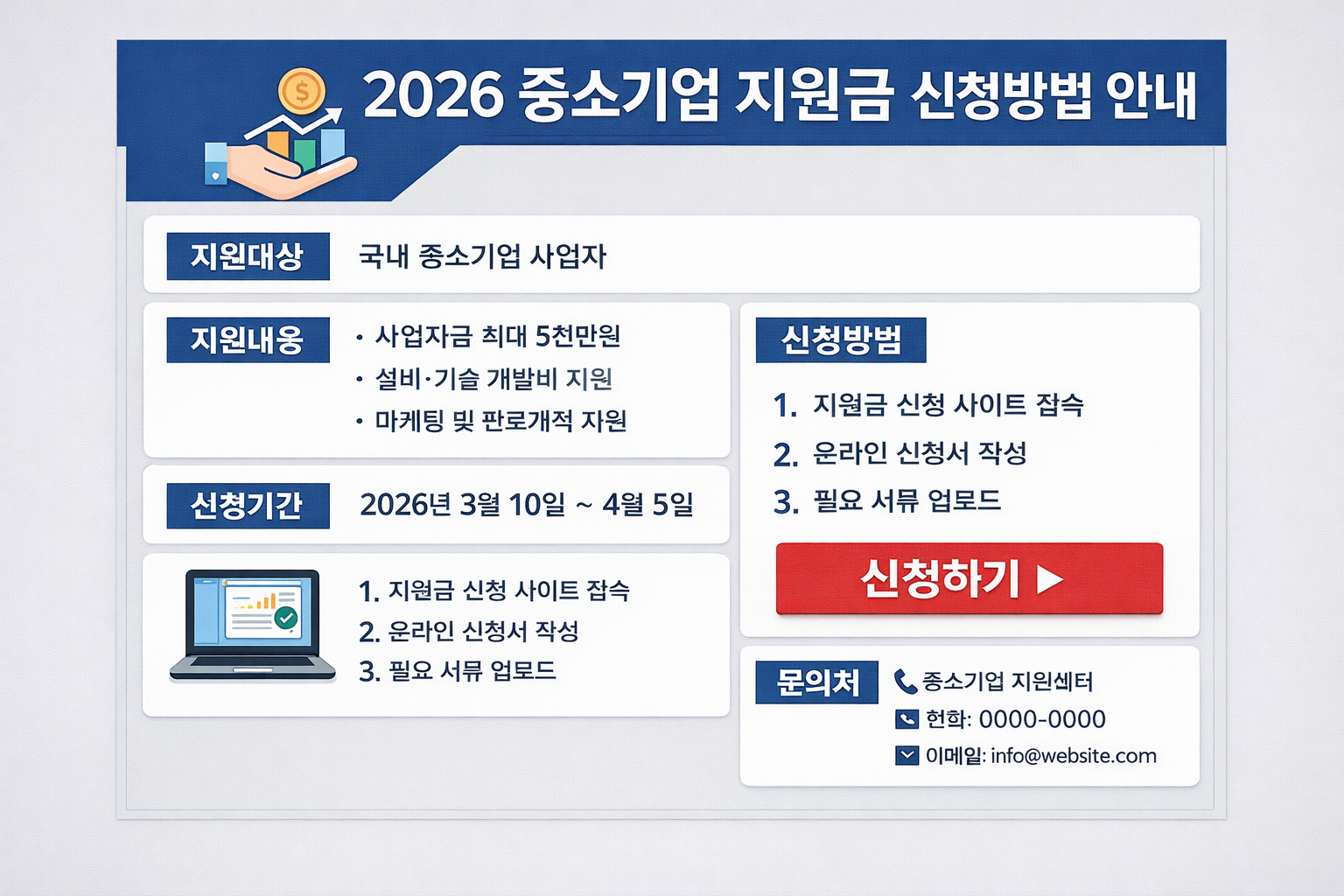 정리하면, 2026 중소기업 지원금 신청방법은 ‘신청 버튼을 누르는 법’보다, 그 전에 준비하는 루틴이 절반이에요.
