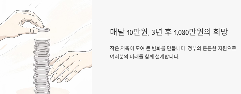 요건을 모두 충족하면 3년 만기 시 1,080만 원 이상의 자산을 형성할 수 있는 구조로 안내되고 있습니다.