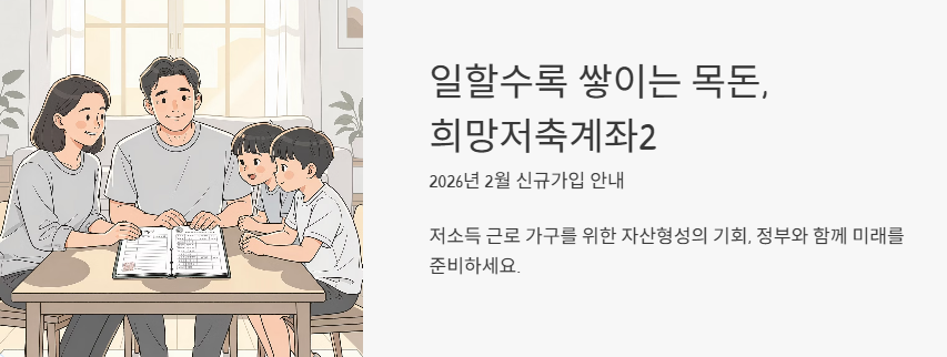 희망저축계좌2는 일정 기간 꾸준히 저축을 유지하면, 정부가 매칭 방식으로 장려금을 더해 자산 형성을 돕는 구조로 설계되었습니다. 2026년에도 신규 가입이 예정되어 있어, 신청 조건과 유지 요건을 정확히 이해하는 것이 중요해졌습니다.