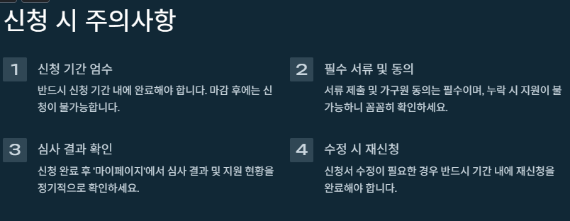 - 신청 기간 엄수 : 반드시 기간 내 완료해야 했고, 마감 이후에는 접수가 제한되는 안내가 있었습니다.