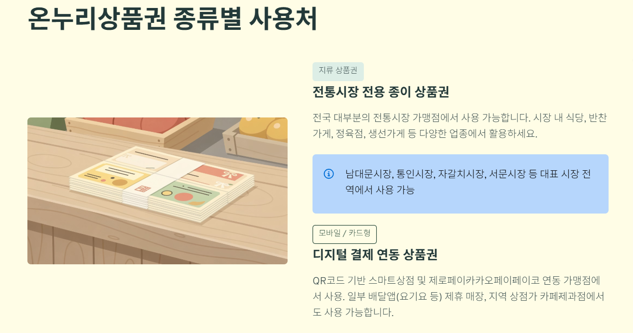 | 지류 상품권 | 현장 제시 후 결제 | 전통시장, 현장 장보기 | 직관적이고 익숙하지만 권종 관리가 필요합니다 |