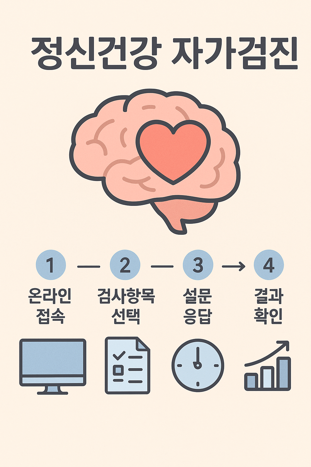 정신건강 자가검진은 이러한 상태를 빠르게 파악하고, 전문 상담이 필요한지 여부를 알려주는 첫 단계입니다.