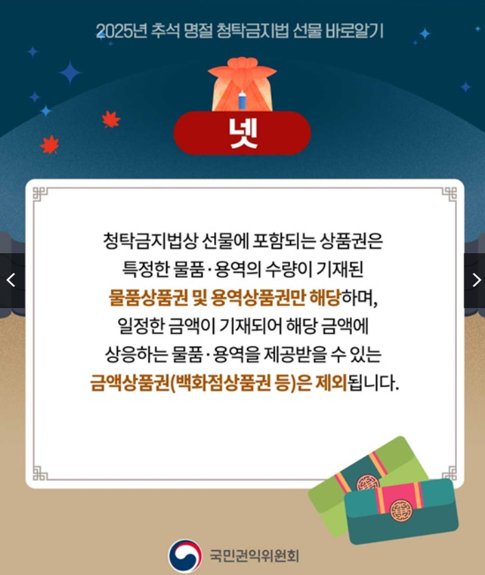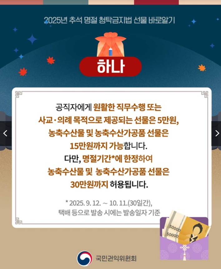 태그: #2025추석 #청탁금지법 #추석선물 #선물허용가액 #농축수산물30만원 #공직자선물기준