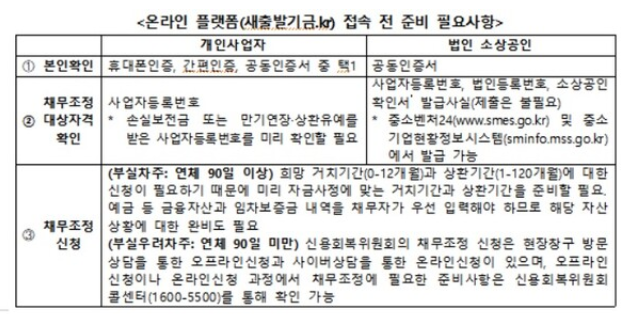 - 온라인 신청 : 새출발기금 공식 홈페이지 접속