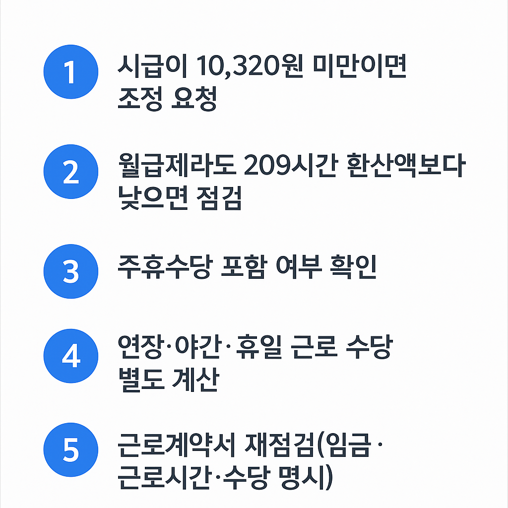 - 시급이 10,320원 미만이면 조정 요청